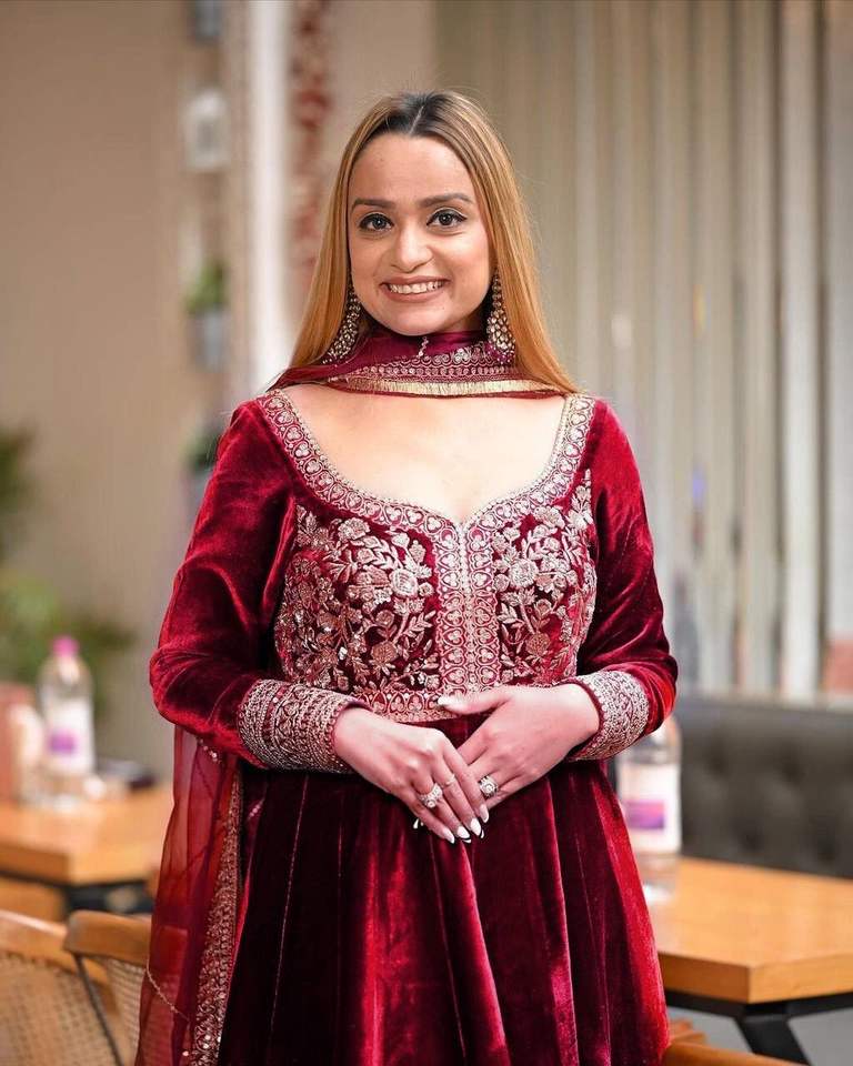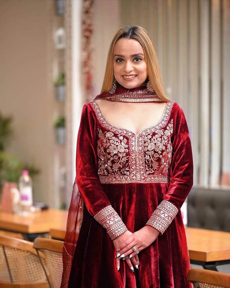 ชุด anarkali ชุดสูทผ้ากำมะหยี่ปักลายและกางเกงผ้ากำมะหยี่ขนาดใหญ่พร้อม dupatta