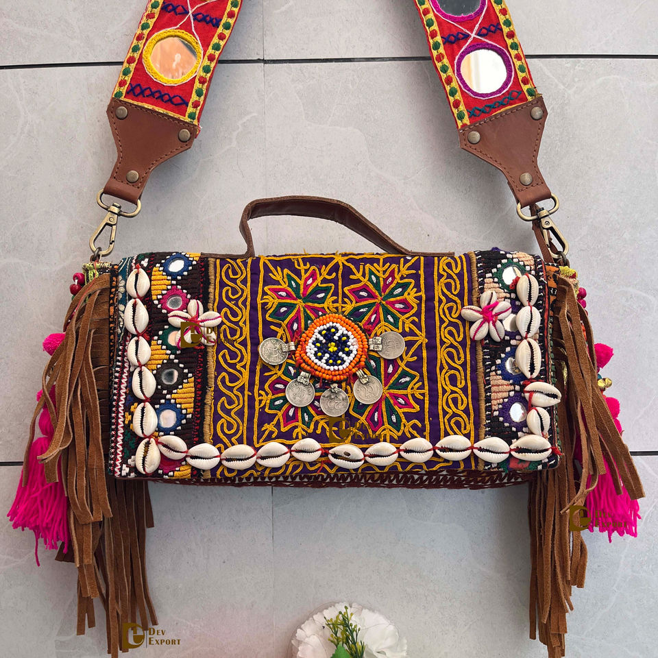 Banjara กระเป๋าถือมีขอบสไตล์วินเทจทำด้วยมือสำหรับผู้หญิงปักลายโบโฮอินเดียออกแบบได้ตามต้องการ