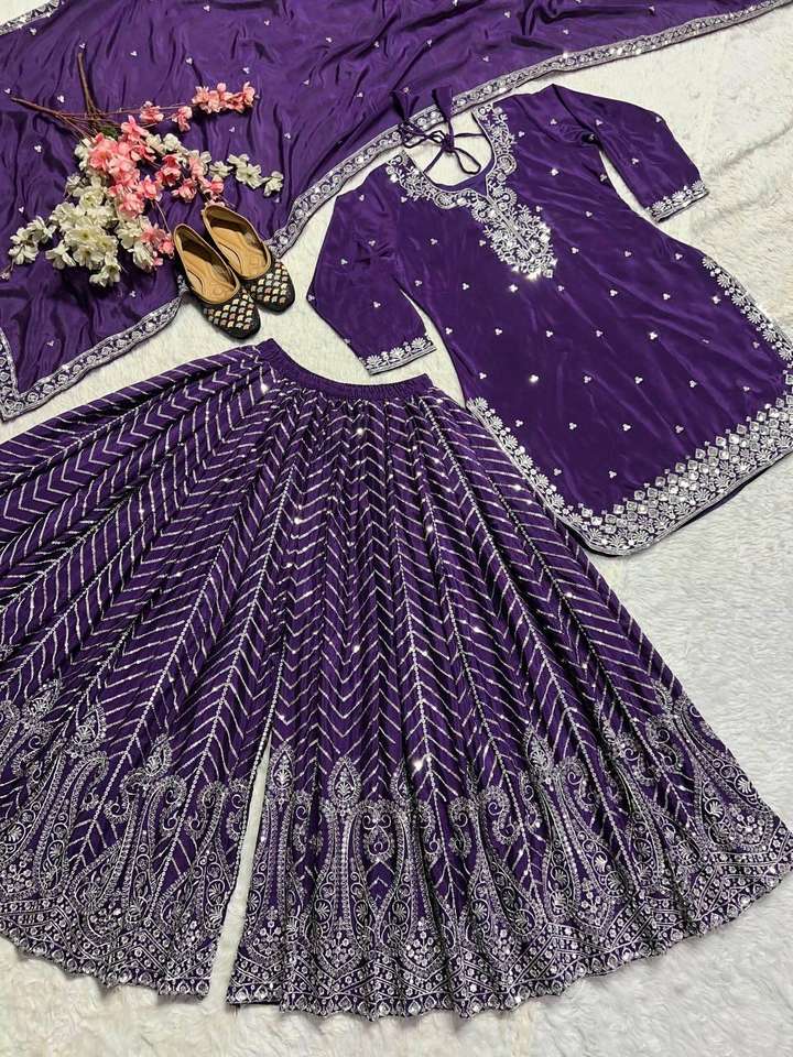 Product Name:Chinon Silk Embroidery Work Top & Sharara With Dupatta
