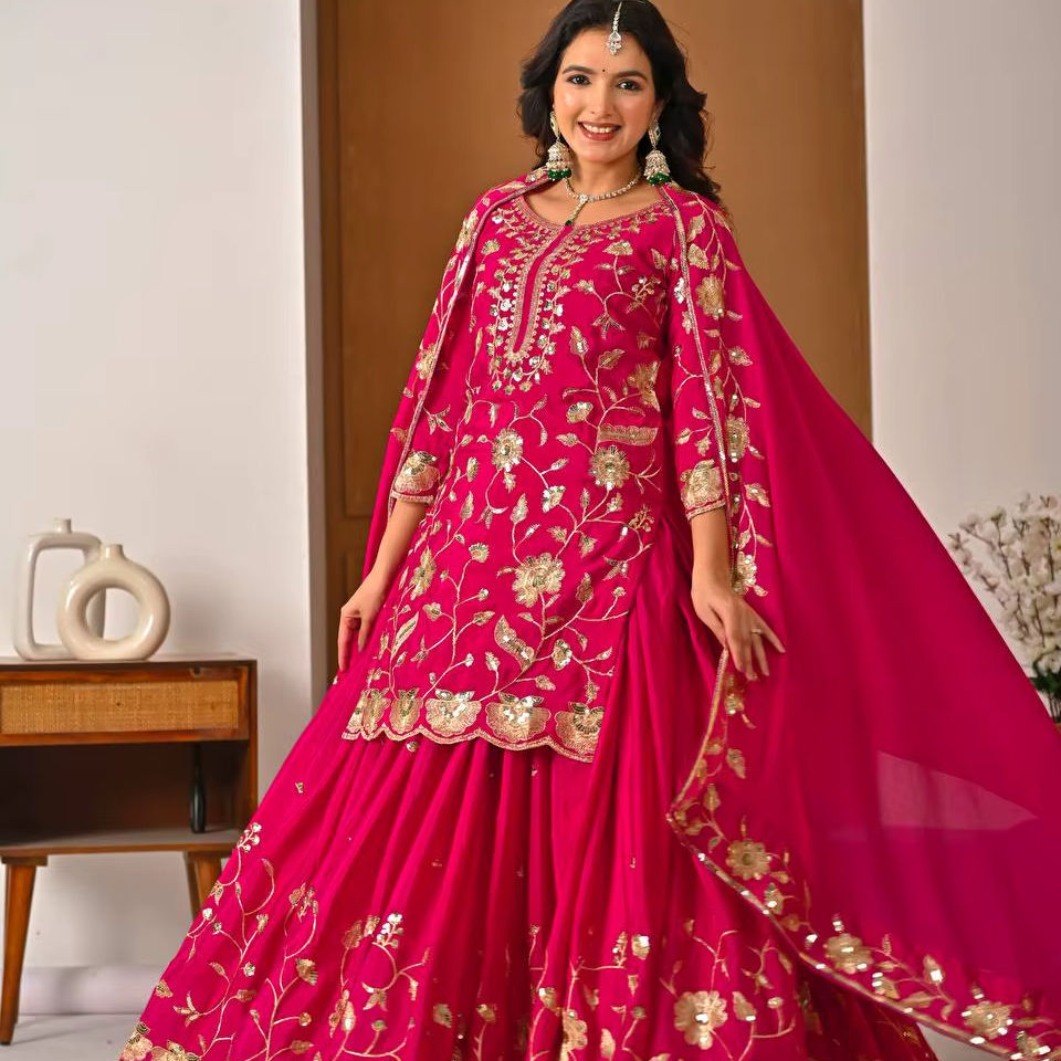 ชุดคุร์ตา/คุรตีดีไซน์ใหม่สำหรับงานแต่งงานในเทศกาลดีวาลี สวมใส่ได้ทุกฤดู พร้อมผ้าคลุมไหล่ ตัดเย็บสำเร็จแล้ว ผ้าไหมชินนอนเนื้อหนา คุณภาพดี จัดส่งรวดเร็ว