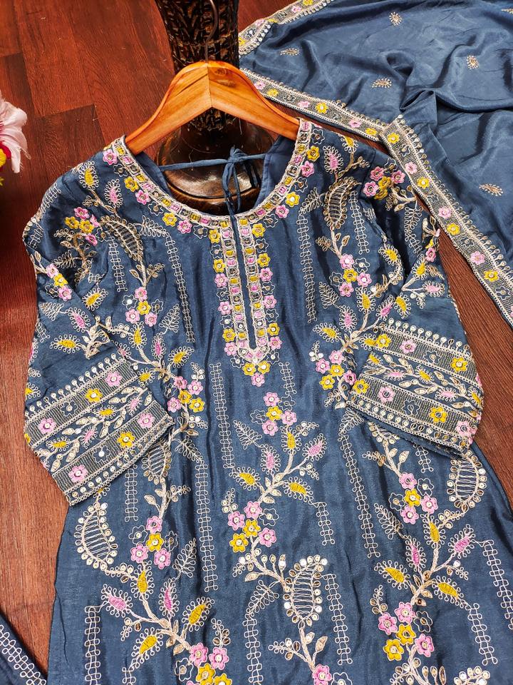 New Designer Embroidered Chinon Sharara Suit With Sequence Embroidered Work Full Stich With Elastic Heavy Embroidery Work