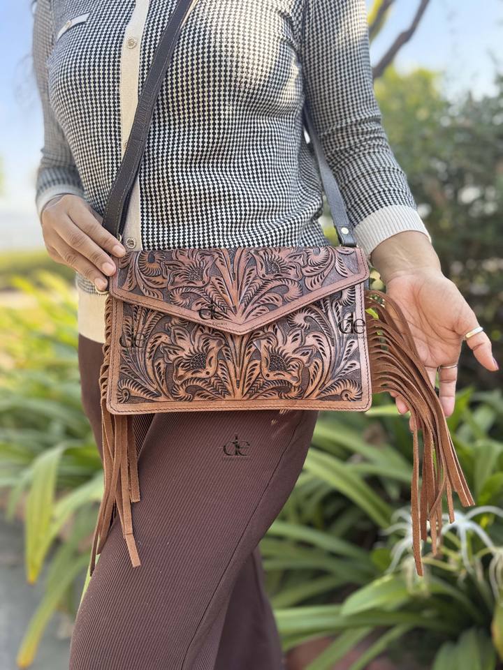 กระเป๋าถือหนังแท้ลายฉลุทำมือ ดีไซน์ใหม่ พร้อมสายสะพาย กระเป๋าสะพายข้างเก๋ไก๋สำหรับผู้หญิง ใช้งานได้หลากหลาย