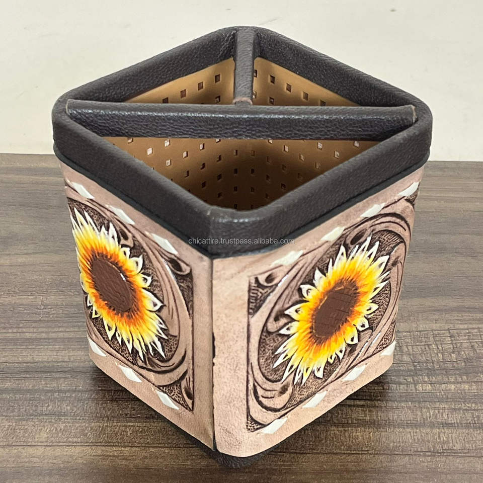 ที่ใส่ปากกาหนังแท้ลายสลักมือดีไซน์ใหม่ งานแสดงสินค้าเดือนมีนาคม สไตล์ตะวันตก สำหรับจัดระเบียบโต๊ะทำงาน อุปกรณ์สำนักงานและโรงเรียน