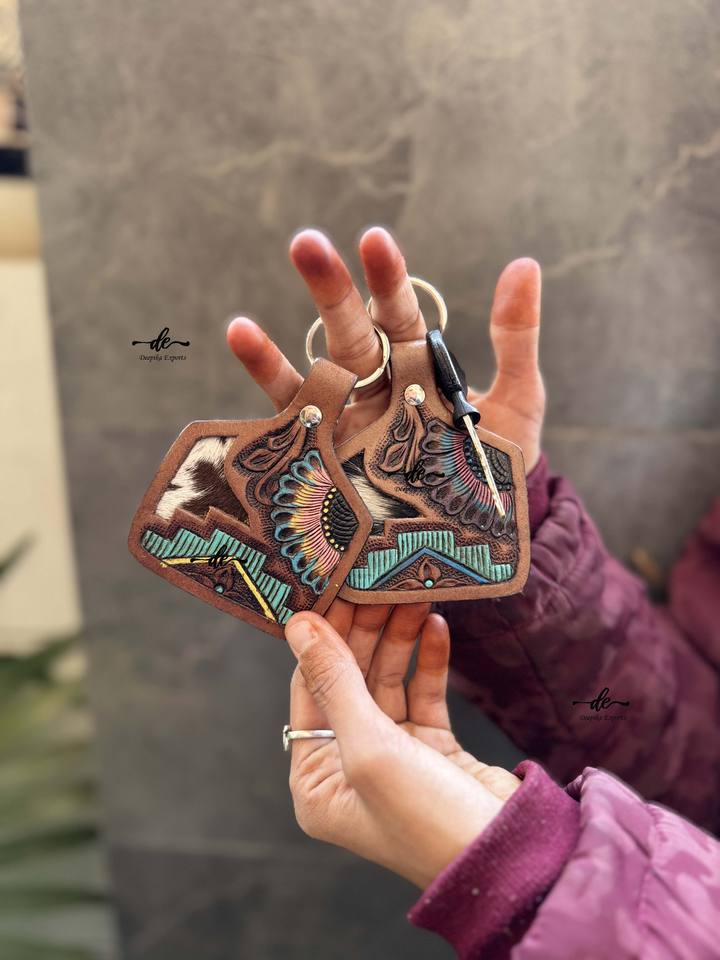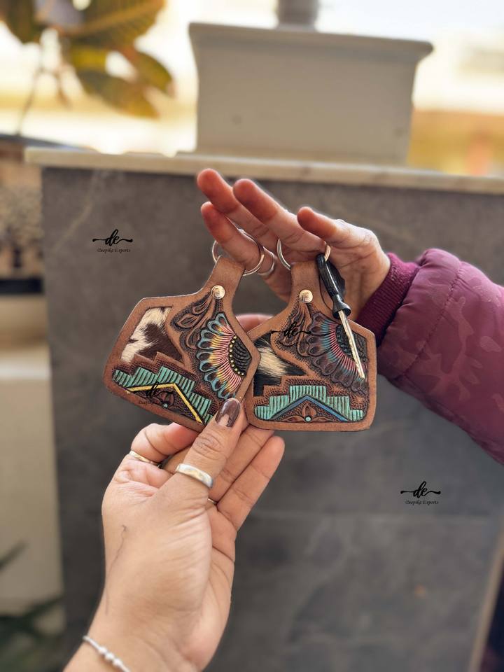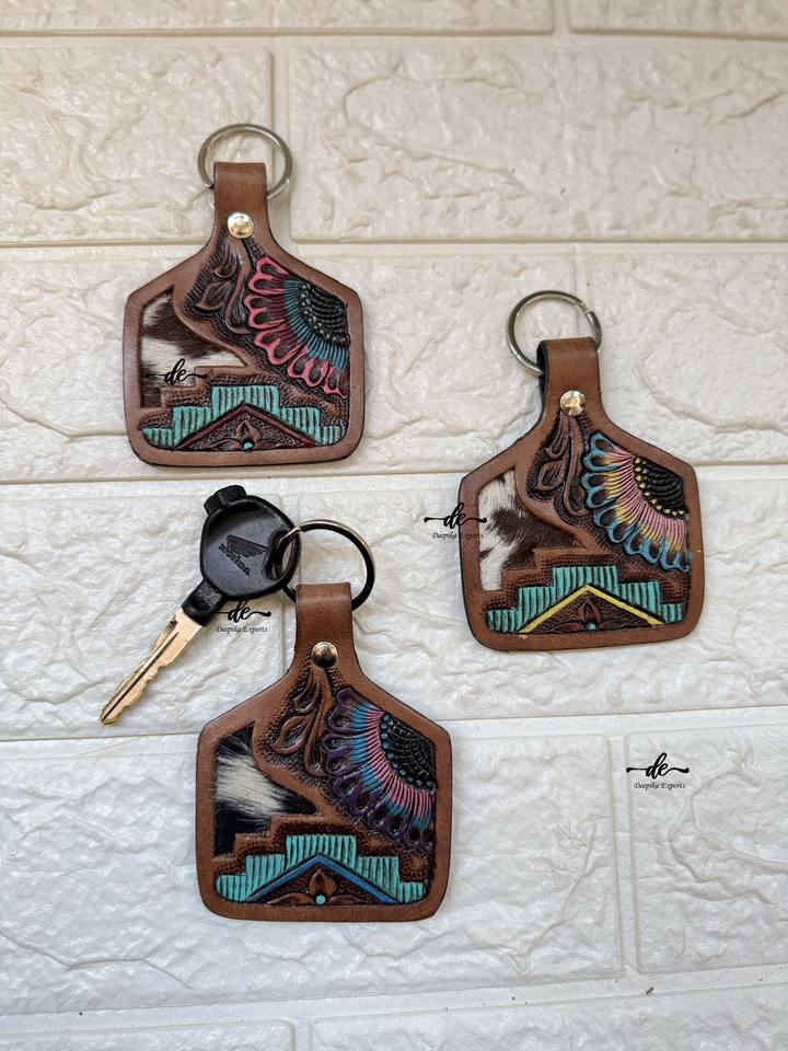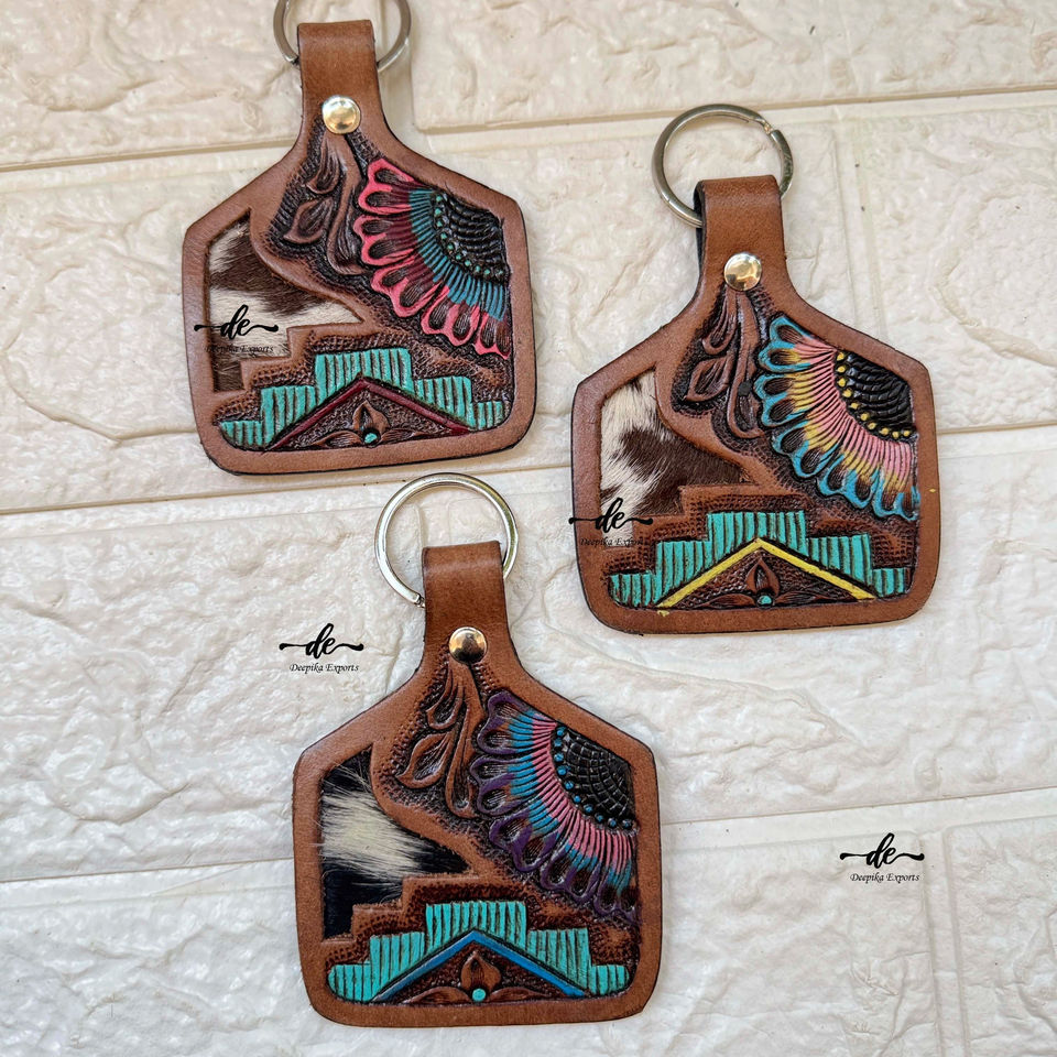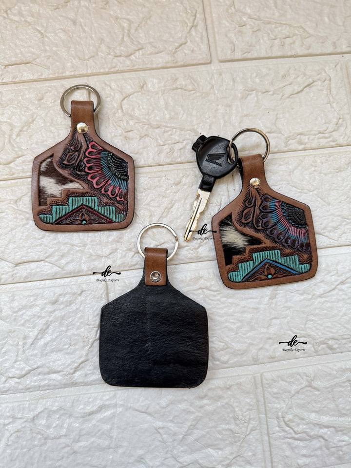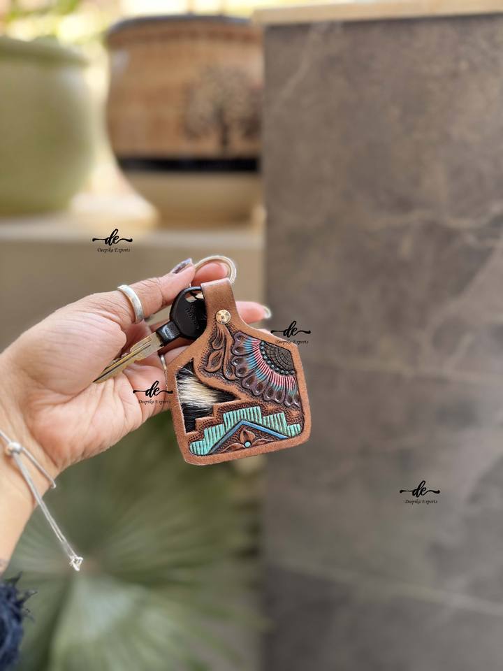 Product name:Hand Tooled Leather Keychain Turquoise Color Keyrings Keychains