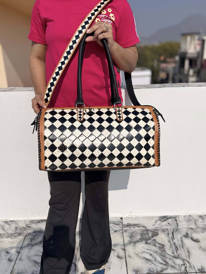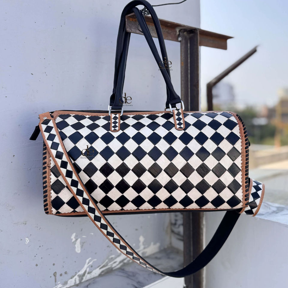 กระเป๋าเดินทางหนังแท้ลายตารางหมากรุก งานแฮนด์เมด ดีไซน์ใหม่ สำหรับทุกเพศ ใช้ได้หลากหลาย ขนาดใหญ่