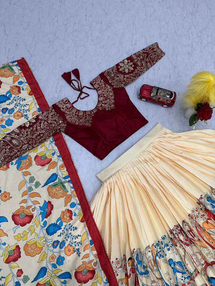 ชุดเลเฮนกาโชลีแบบดั้งเดิมสำหรับงานปาร์ตี้ งานปักลายคัลัมคารี ผ้าชีฟองหนา ตกแต่งด้วยเลื่อม งานปักมือ ตัดเย็บสำเร็จ ยาวเต็มตัว แบบใหม่