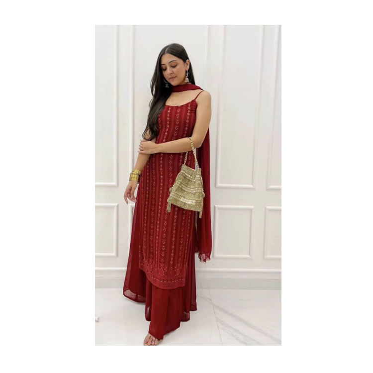 ชุดสูท Georgette Palazzo dupatta ผ้าไหมปากีสถาน salwar สำหรับงานแต่งงานงานปาร์ตี้อินเดีย