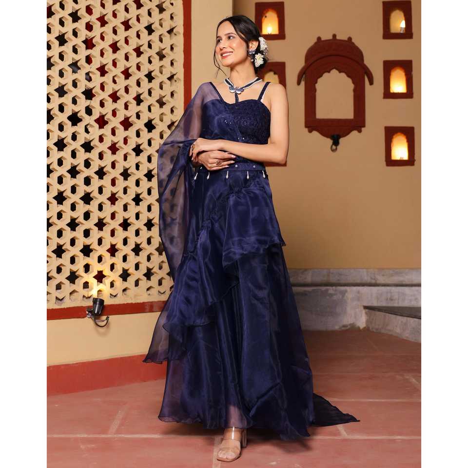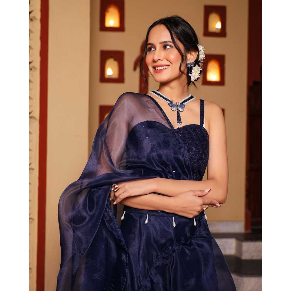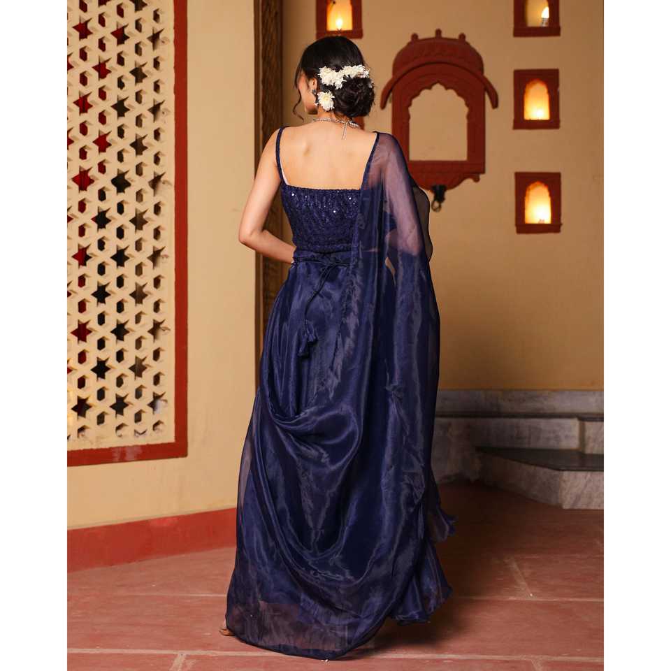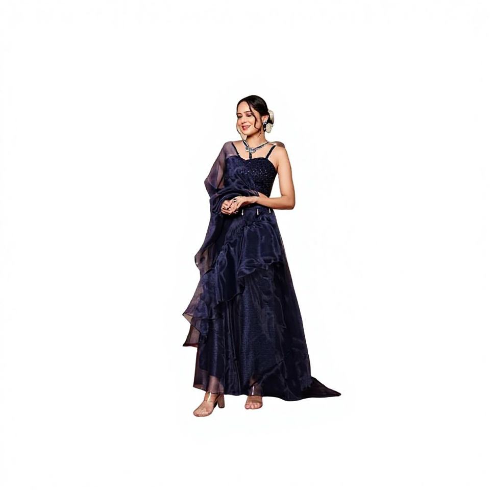 ผ้าซารีออร์แกนซ่าเนื้อหนาแบบใหม่ พร้อมเสื้อคลุมสวยหรู ผ้าซารีอินเดีย/ปากีสถาน สำหรับงานแต่งงานและใส่ในบ้าน ราคาขายส่ง