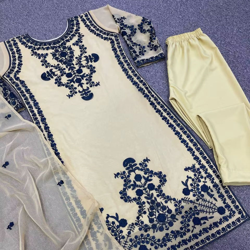 เสื้อผ้าอินเดียและปากีสถานดีไซน์ใหม่ชุดใส่ไปงานเลี้ยงอาหารกลางวันปักลายด้านบนด้านล่างด้วยรูปลักษณ์ใหม่