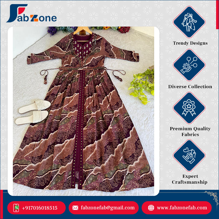 ชุดราตรีผ้าเรยอนสำหรับผู้หญิงงานปาร์ตี้ปักด้วยมือหลากสีไวน์สไตล์อินเดียดีไซน์ใหม่
