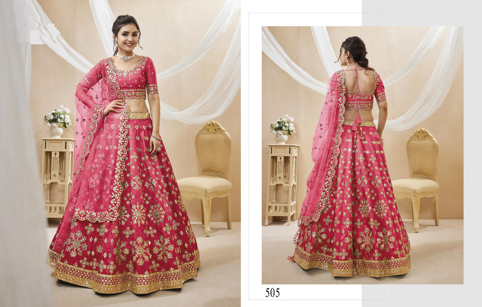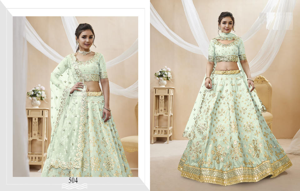 Lehengha choli คอลเล็คชั่นพิเศษ georgette กับนักออกแบบปักสี่ลำดับและนักออกแบบ latkan