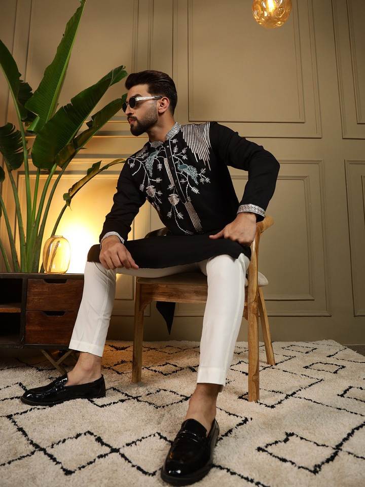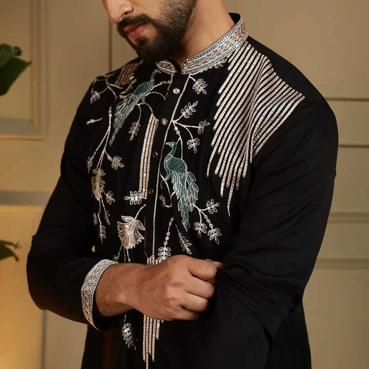 ชุดคุรตะผ้าไหมแบบดั้งเดิมสำหรับผู้ชาย ดีไซน์ใหม่ ลายปัก งานฝีมือประณีต ความยาวระดับเข่า พร้อมชุดนอน มีไซส์พลัสไซส์ให้เลือก