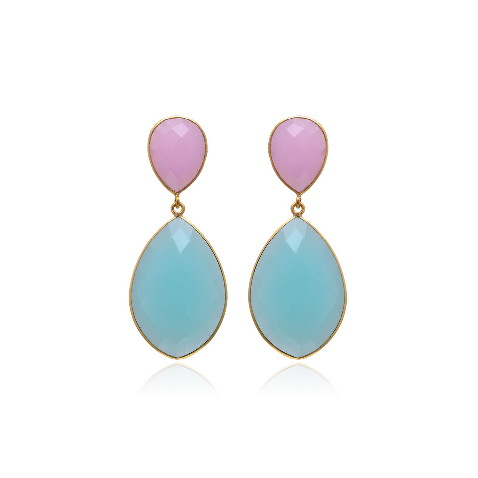 ต่างหูห้อยชุบทองสเตอร์ลิง925วินเทจทันสมัยทันสมัยใหม่อัญมณีคาลซิโดนีธรรมชาติของขวัญสำหรับงานเลี้ยงของผู้หญิง