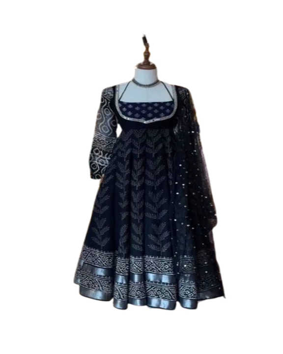 ชุดเดรสงานปาร์ตี้ดีไซน์ใหม่ ผ้าจอร์เจียต์เทียม ปักลายปักเลื่อมอย่างสวยงาม พร้อมผ้าคลุมไหล่ ชุดอานาร์กาลี ราคาประหยัด