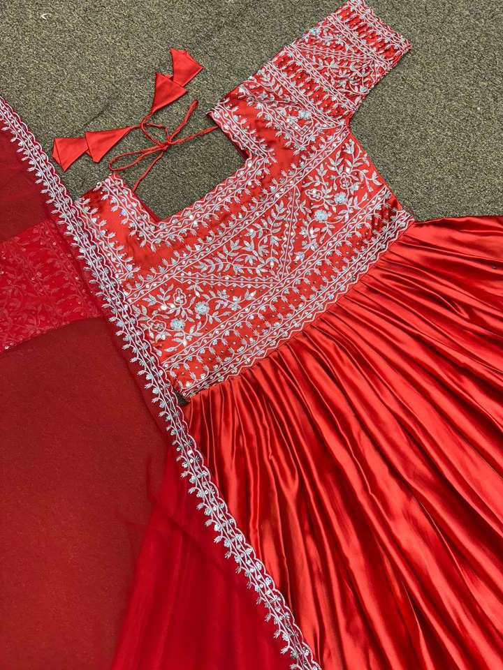 ชุดเดรสงานปาร์ตี้ออกแบบใหม่ทำจากผ้าไหม Devsena พร้อมงานเย็บปักถักร้อยประดับเพชรทำมือพร้อมด้วย dupatta