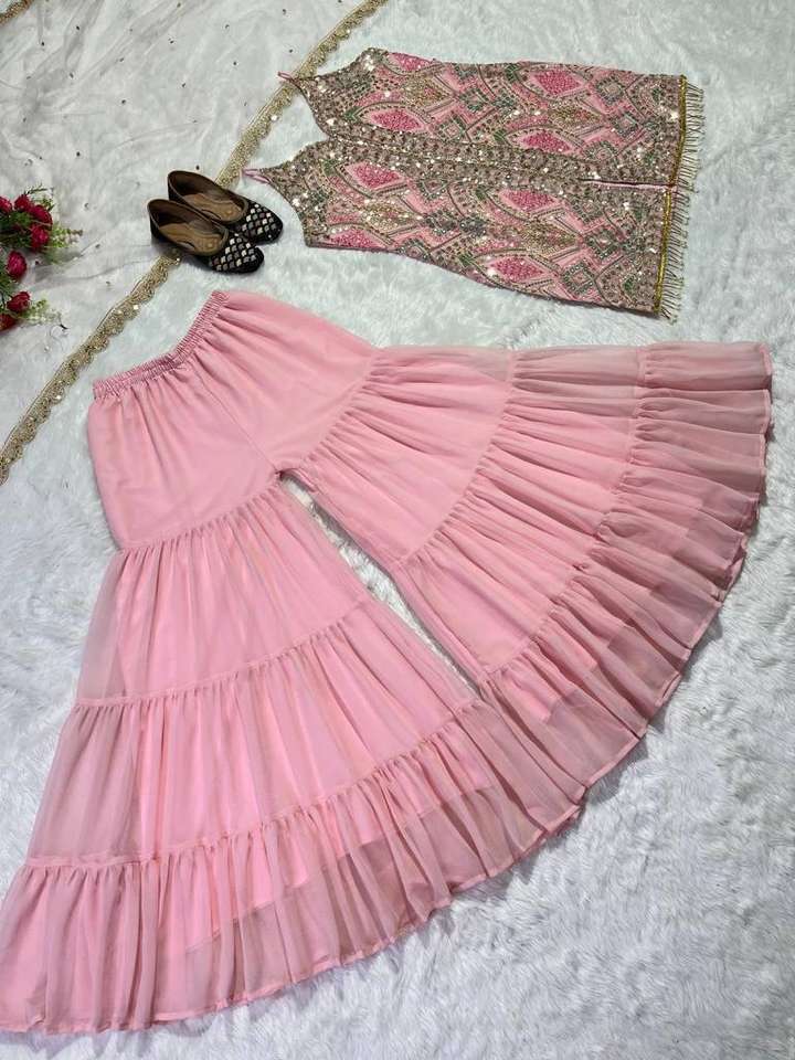 ชุดงานเลี้ยงดีไซน์ใหม่ ท็อป ชาราร่า ปาลาซโซ และผ้าคลุมไหล่ ผ้าเน็ตลายผีเสื้อหนัก พร้อมงานปักเลื่อม 5 มม.