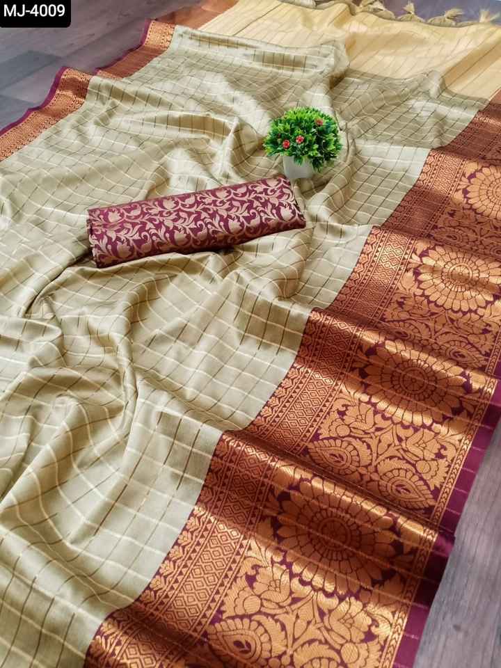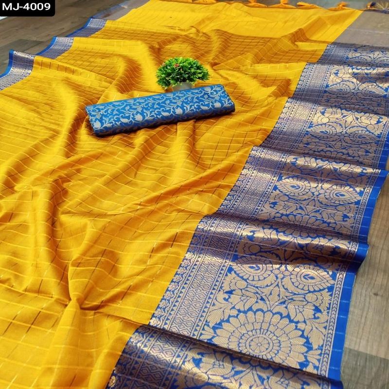 ส่าหรีผ้าไหมคอตตอนแท้จากนักออกแบบใหม่ส่าหรีทอผ้าขอบหนาสำหรับงานปาร์ตี้และงานเทศกาล