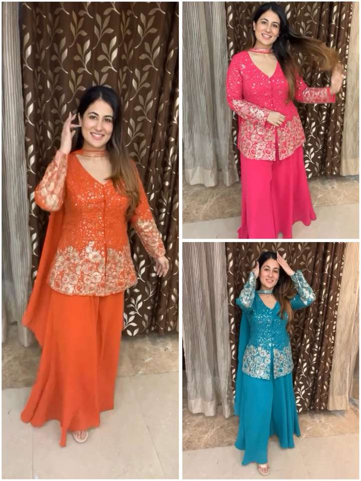 เสื้อที่ได้รับความนิยมดีไซน์ใหม่พร้อมงานปักเลื่อมจับคู่กับพาลาซโซทรงกลมและ dupatta