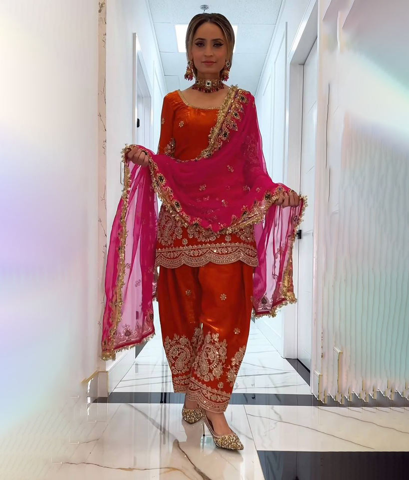 ชุดเดรสออกงานสำหรับผู้หญิง ดีไซน์ใหม่ ผ้าโพลีเอสเตอร์ ปักลายสวยงาม พร้อมผ้าคลุมไหล่ ชุดสัลวาร์ คามีซ เซ็ตคุร์ติ กางเกงขายาว ชุดดีวาลีแบบดั้งเดิม