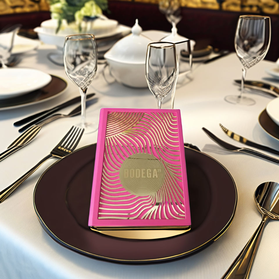 New Designs Custom Size Luxury PU Leather Menu Cover Folder Restaurants 8.5x14 ISO Certified Low Cost Metal Plate Logo 4-5 Stars