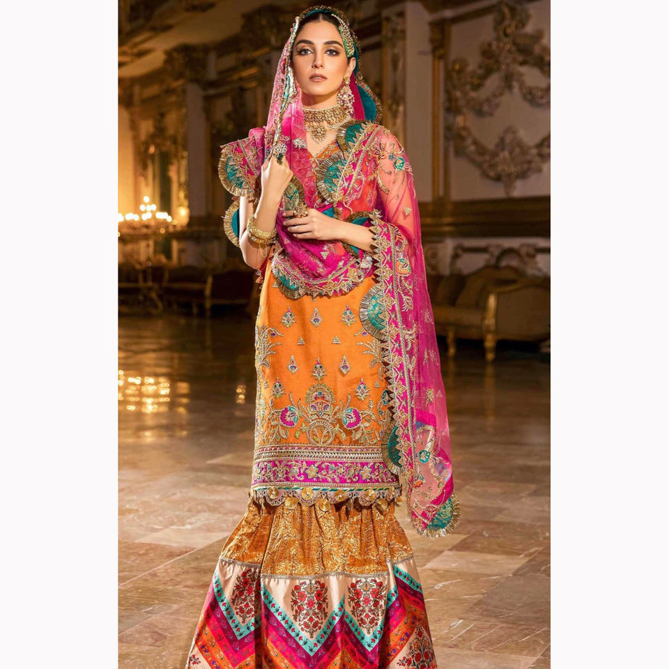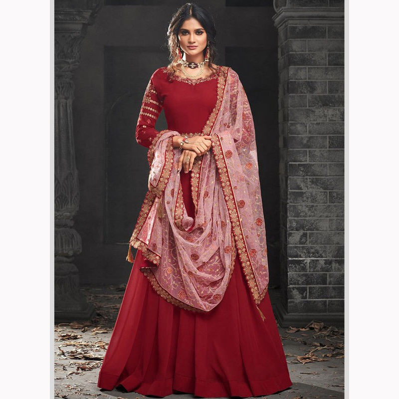 ชุดเจ้าสาวผ้าไหมหนักประดับด้วยลูกปัดแก้วคริสตัลและหิน salwar kameez สำหรับงานแต่งงานของผู้ใหญ่ดีไซน์ใหม่