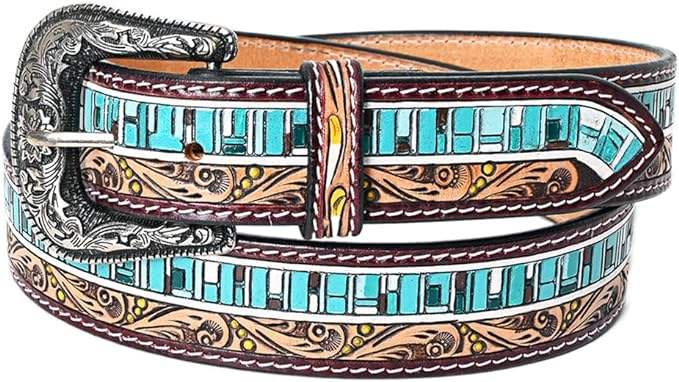 เข็มขัดหนังแท้ทำด้วยมือดีไซน์ใหม่เข็มขัดหนังสไตล์ตะวันตกใช้ได้ทั้งชายและหญิงเข็มขัดสีเทอร์ควอยซ์อินเดีย