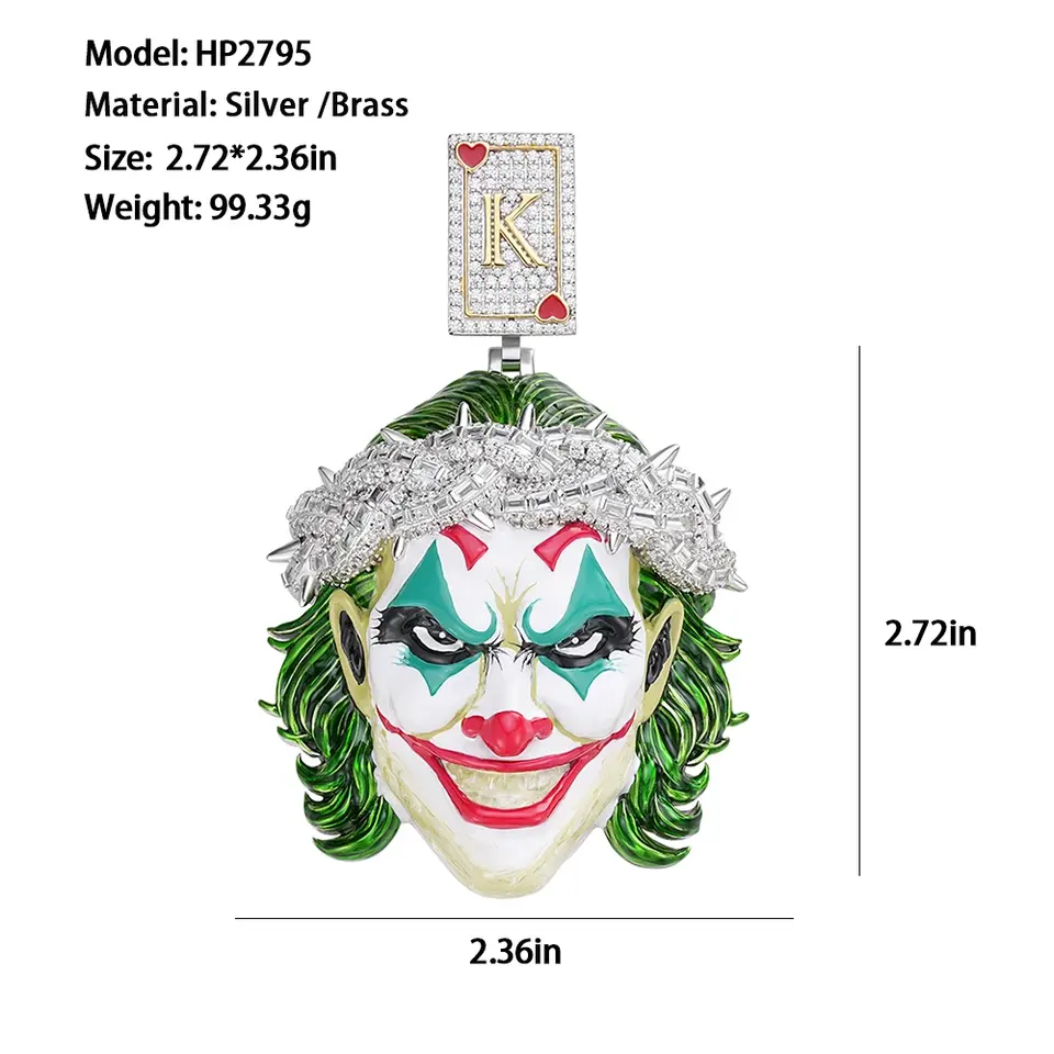 ดีไซน์ใหม่ VVS มอยส์ซาไนต์ เงินแท้ 925 เครื่องประดับเงินแท้สไตล์วินเทจ จี้และชาร์ม จี้โจ๊กเกอร์สำหรับผู้ชาย