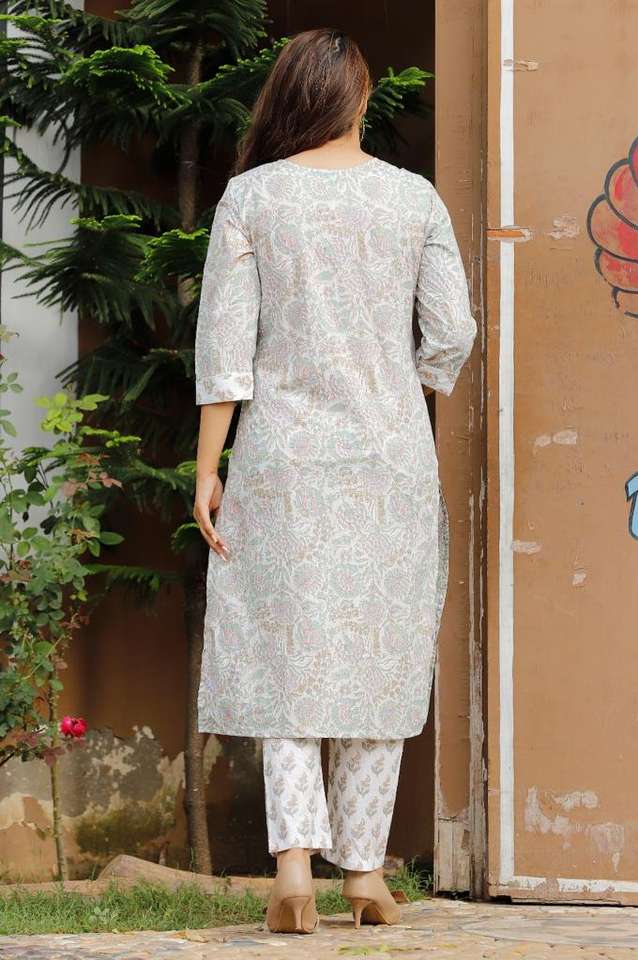 Kurti กางเกง3ชิ้นของผู้หญิง,Kurti แบบอินเดียคอกลมแขนสามส่วนพิมพ์ลายสำหรับโอกาสแฟชั่นใหม่