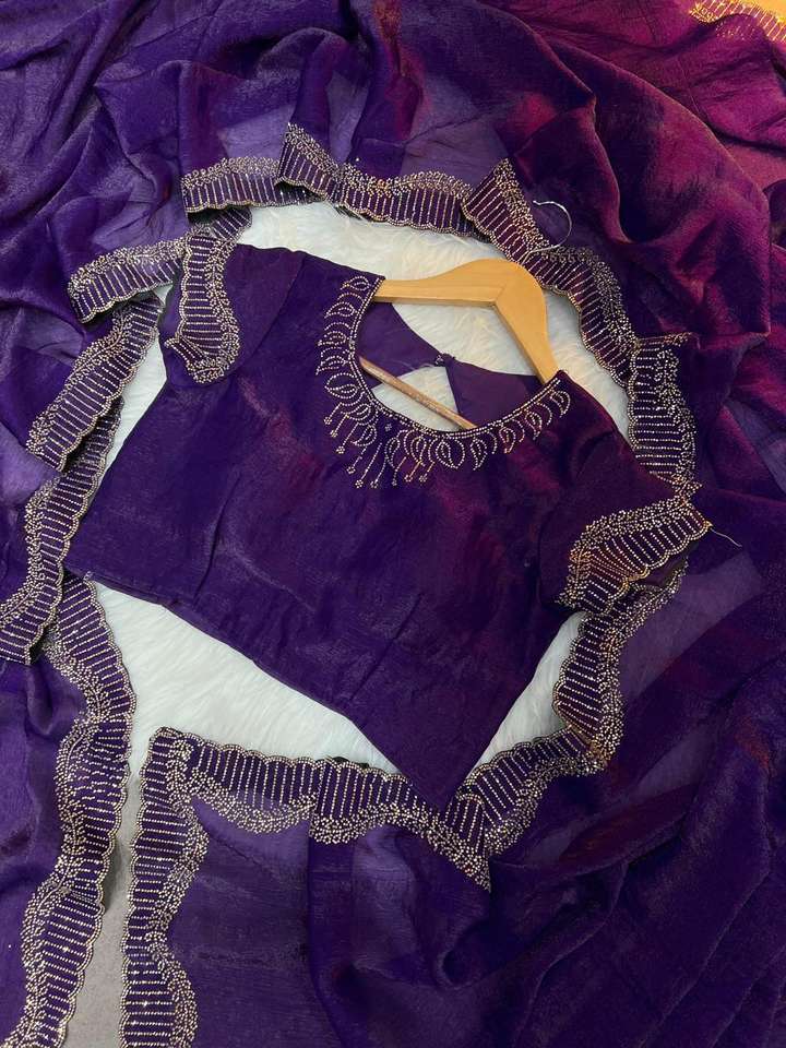 เสื้อส่าหรีผ้าไหมลายอวกาศประดับเพชรหรูหราดีไซน์ใหม่ dhwaja ส่งออก