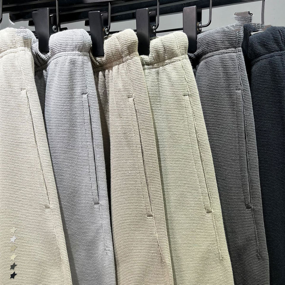 ใหม่เพชรถนนพิมพ์วาฟเฟิลหลวมสายรัดตรงกางเกงขาสั้นเปล่าสําหรับผู้ชายผ้าฝ้าย