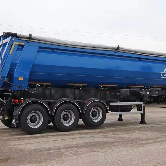 รถดัมพ์กึ่งพ่วงรูปตัวยู ดีเซลใหม่ บรรทุกได้ 40-50 ตัน เกียร์อัตโนมัติ โครงเหล็กกล้าคาร์บอน กระบะท้ายยกได้ สำหรับขนส่งทราย