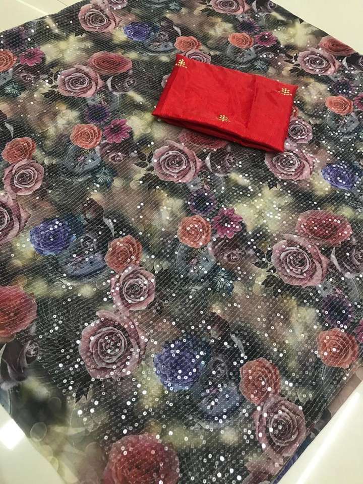 ส่าหรีแบบดั้งเดิมอินเดียสำหรับสุภาพสตรีพิมพ์ลายดิจิทัลใหม่