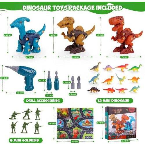New Dinosaur Toys Set Take Apart Building Toys with Electric Drill & Play Mat for Learning Machines