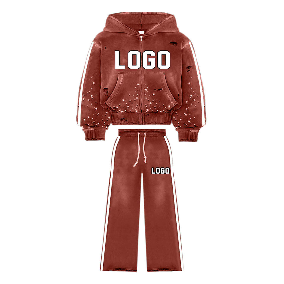 ชุดวอร์มมีซิปเปิดไหล่สำหรับผู้ชายมาใหม่ชุดวอร์มมีซิปแบบธรรมดาของ100% เทอร์รี่ทรงหลวมกางเกงสวมใส่สบายไม่มีลาย