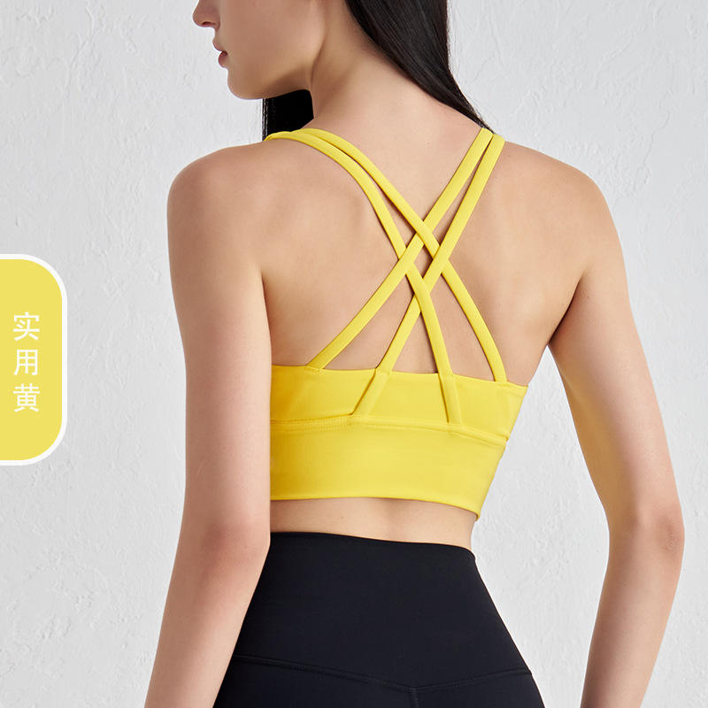 สปอร์ตบราแบบไขว้หลัง รุ่นใหม่ ผ้าสองชั้น พร้อมลายจุดกันกระแทก สำหรับโยคะและฟิตเนส ผลิตจากไนลอน/คอตตอน รองรับระดับปานกลาง