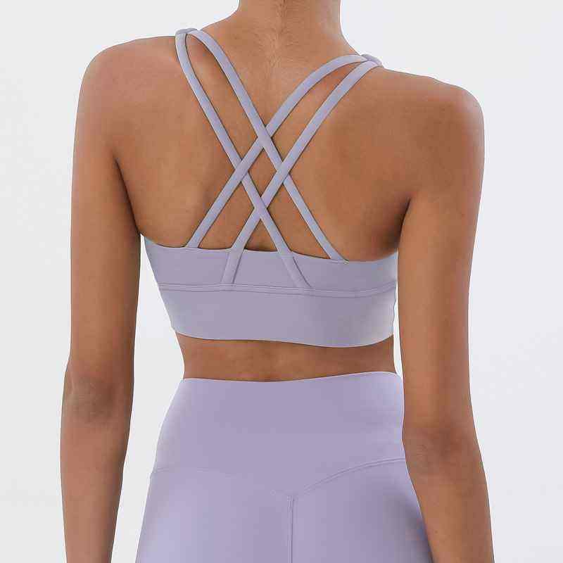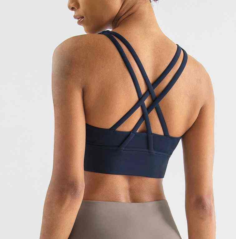 เสื้อชั้นในกีฬาแบบใหม่สองด้าน ผ้าขัดเงา ทรงไขว้หลัง ซัพพอร์ตสูง กันกระแทก กระชับรูปร่าง เหมาะสำหรับโยคะ ฟิตเนส และออกกำลังกายสำหรับผู้หญิง