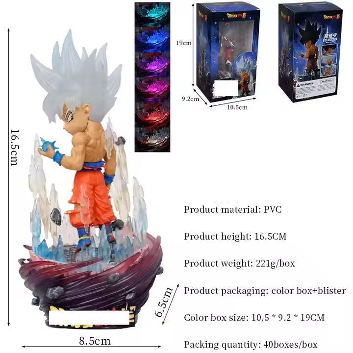ฟิกเกอร์อนิเมะดราก้อนบอลใหม่ WCF ซุนโกคูผมเทา อัลตร้าอินสติงค์ ไฟส่องสว่าง หน้าอกนูน 16.5 ซม. ของเล่นฟิกเกอร์แอคชั่น ของขวัญคริสต์มาส
