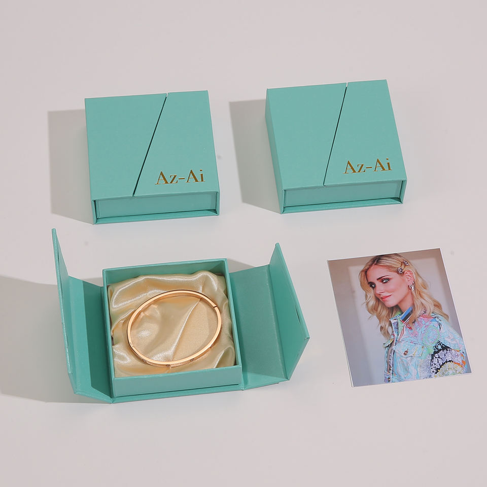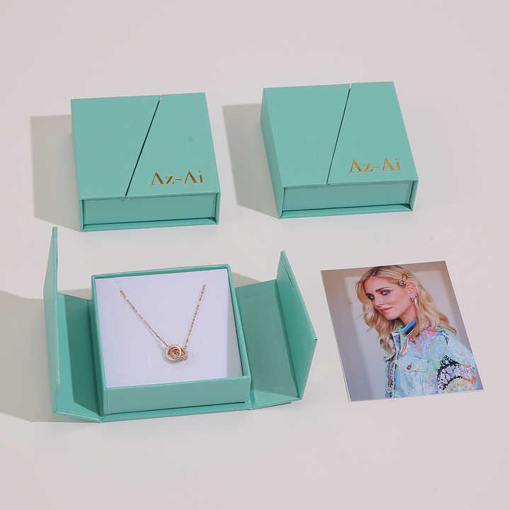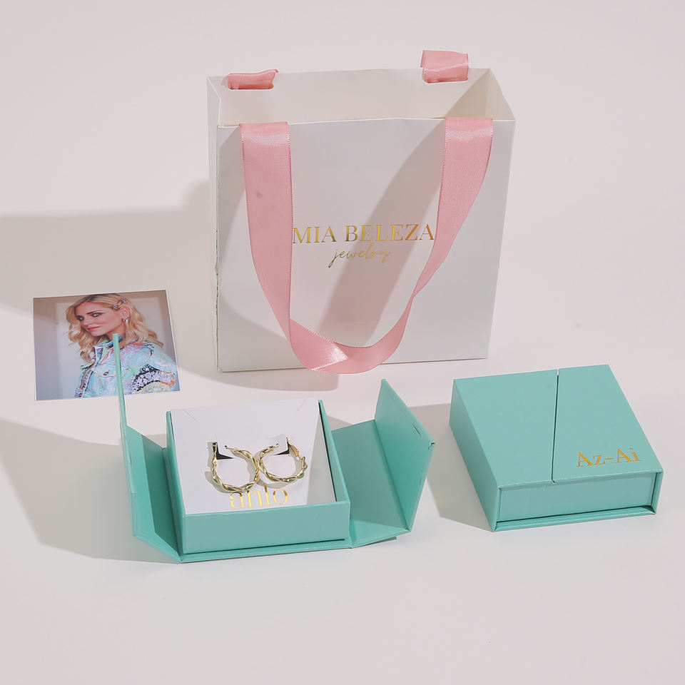 กล่องใส่เครื่องประดับแบบเปิดได้สองด้าน พร้อมแม่เหล็ก ชุดกล่องกระดาษรีไซเคิลรักษ์โลก สามารถปรับแต่งโลโก้ได้ พร้อมถุงกระดาษ
