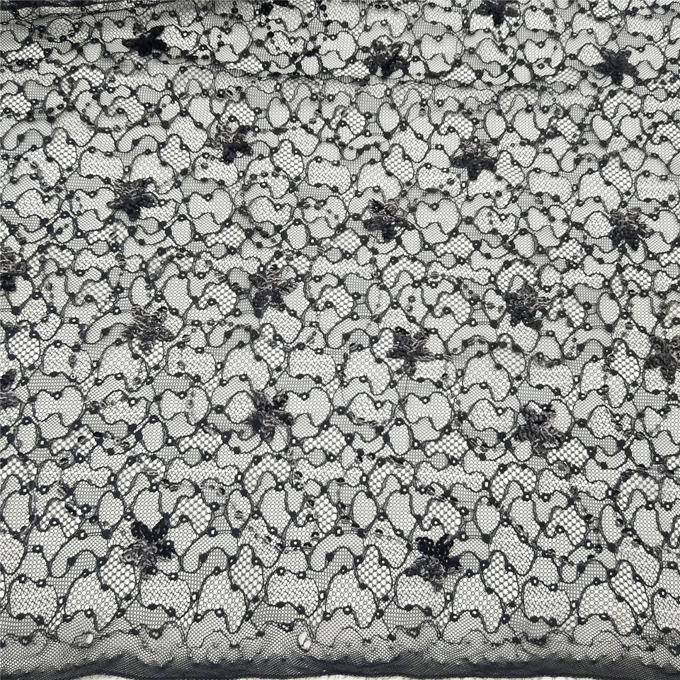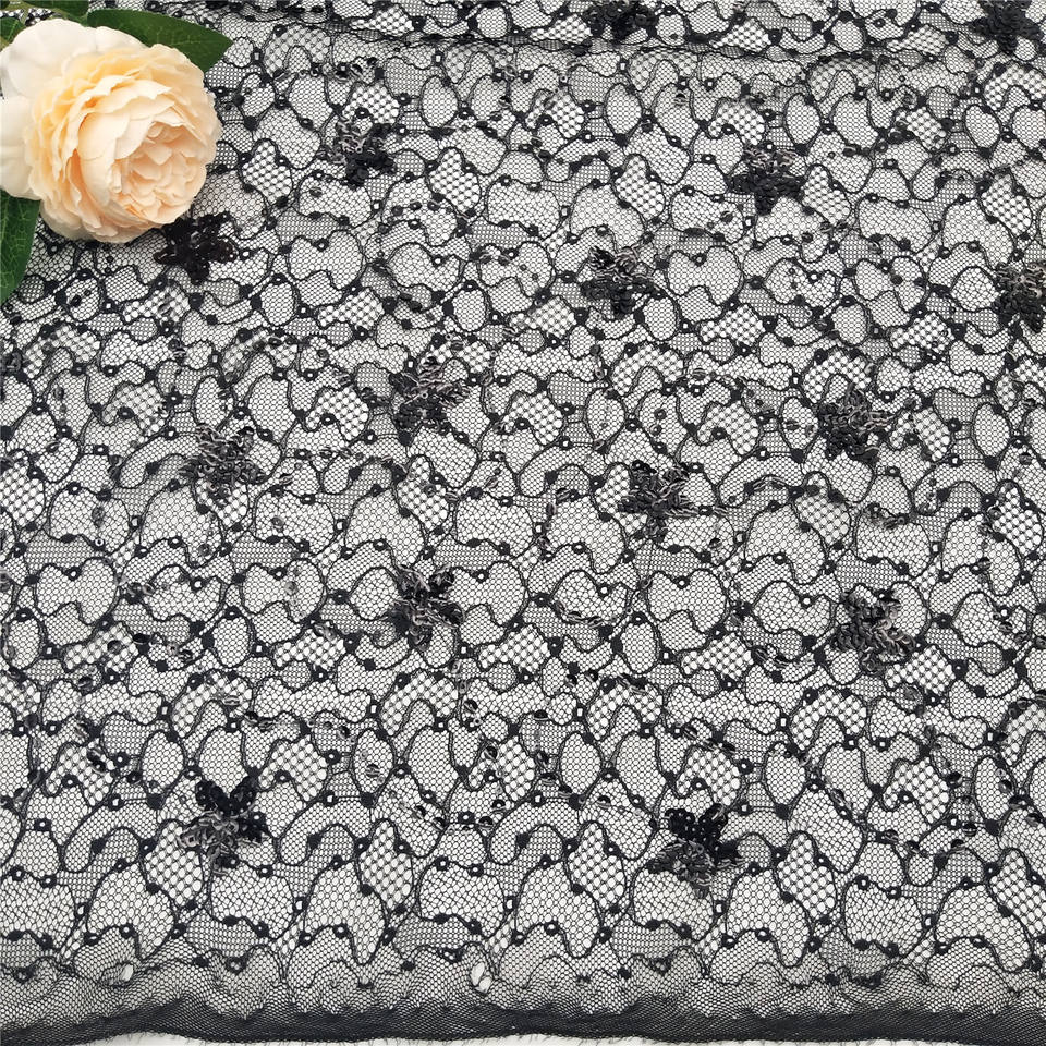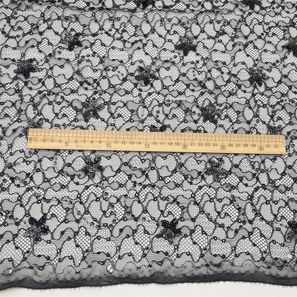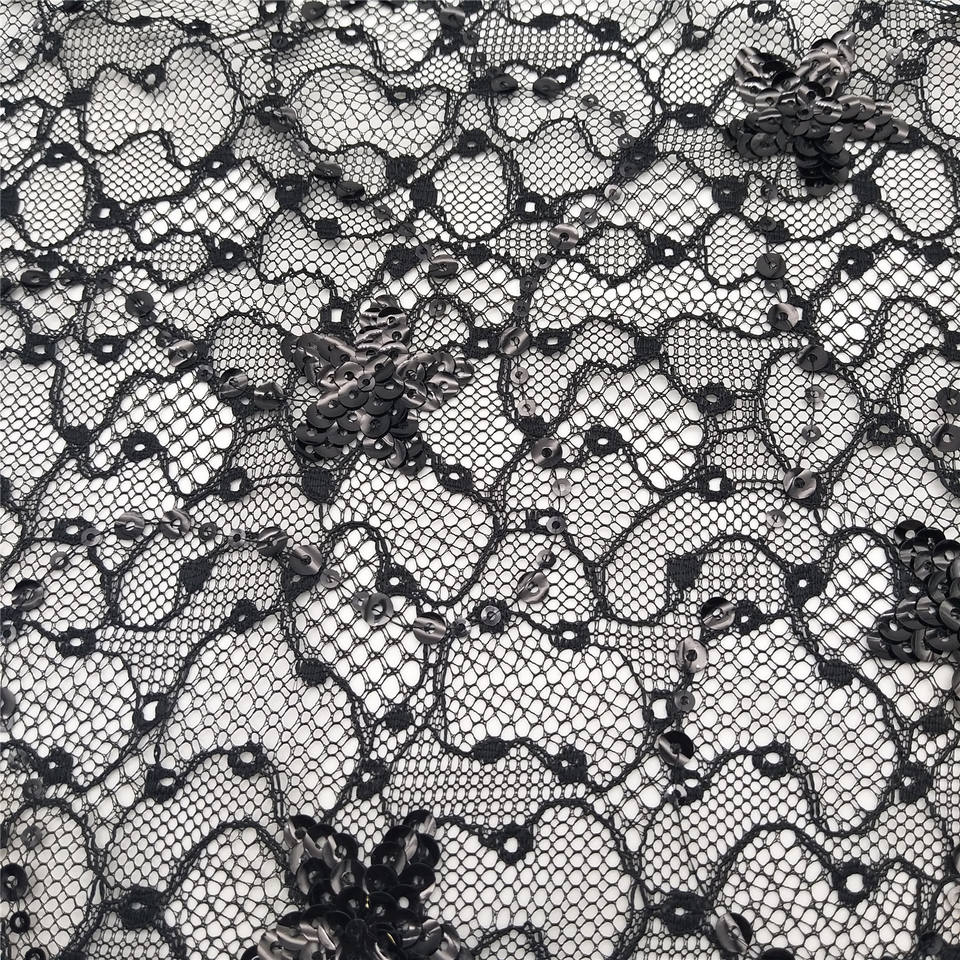 ผ้าลูกไม้ฝรั่งเศสปักเลื่อมสีดำแบบ 3 มิติ สไตล์ดูไบใหม่ ผ้าถักลายดอกไม้หรูหราสไตล์วินเทจสำหรับเจ้าสาว