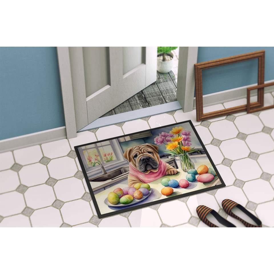 พรมเช็ดเท้าอีสเตอร์ Shar Pei ใหม่พรมเช็ดเท้ากันลื่นในร่มกลางแจ้งขนาด18ชม. X 27W พรมปูพื้นแบบซักได้พรมปูพื้นด้านหน้าสำหรับทางเข้าบ้าน