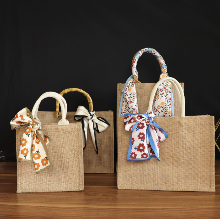 ถุงผ้าปอกระเจาผ้าลินินชายหาดแบบใช้ซ้ำได้ใหม่เป็นมิตรกับสิ่งแวดล้อมพิมพ์โลโก้ได้ตามต้องการ
