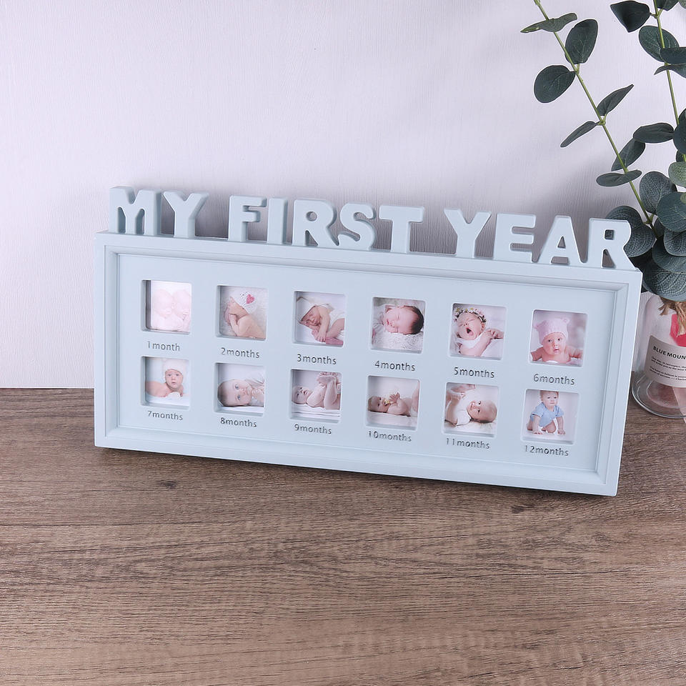 กรอบรูปของที่ระลึกเด็ก12เดือนทำจากไม้เป็นมิตรกับสิ่งแวดล้อมสินค้าใหม่สำหรับเด็กปีแรกของฉันพร้อมช่วงเวลาถ่ายรูป12ภาพปรับแต่งโลโก้ได้