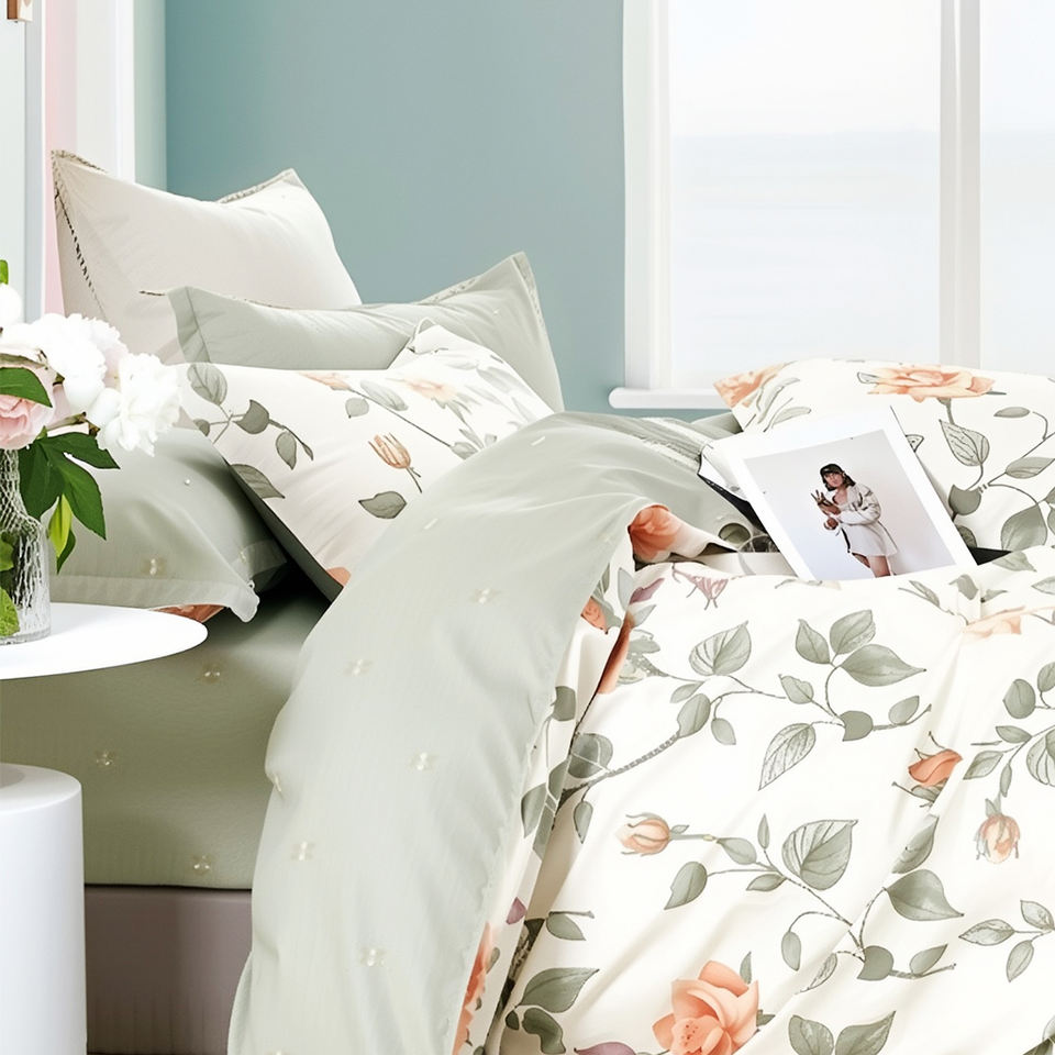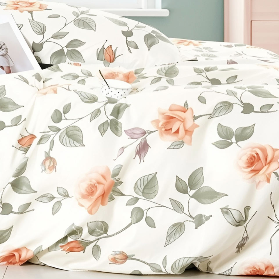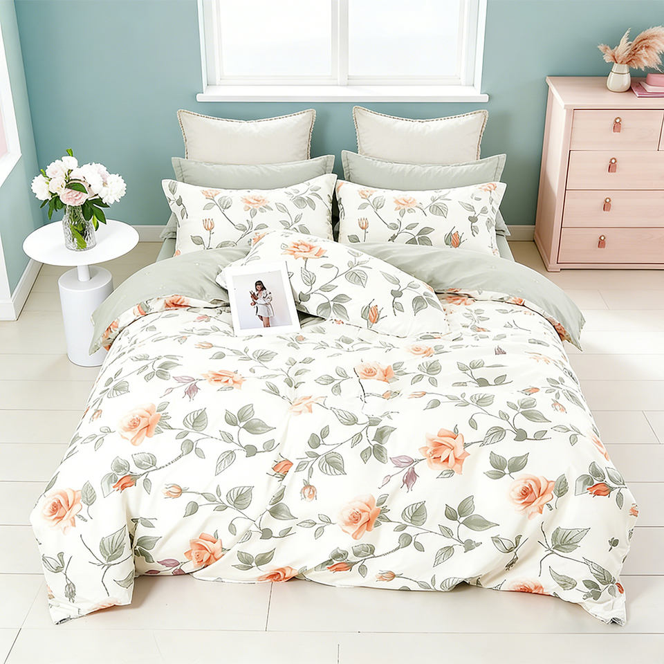 ชุดผ้าห่มนวมลายพืชสไตล์ยุโรป ผลิตจากผ้าฝ้ายทอแบบเป็นมิตรต่อสิ่งแวดล้อม 3 ชิ้น 200TC จัดส่งรวดเร็ว