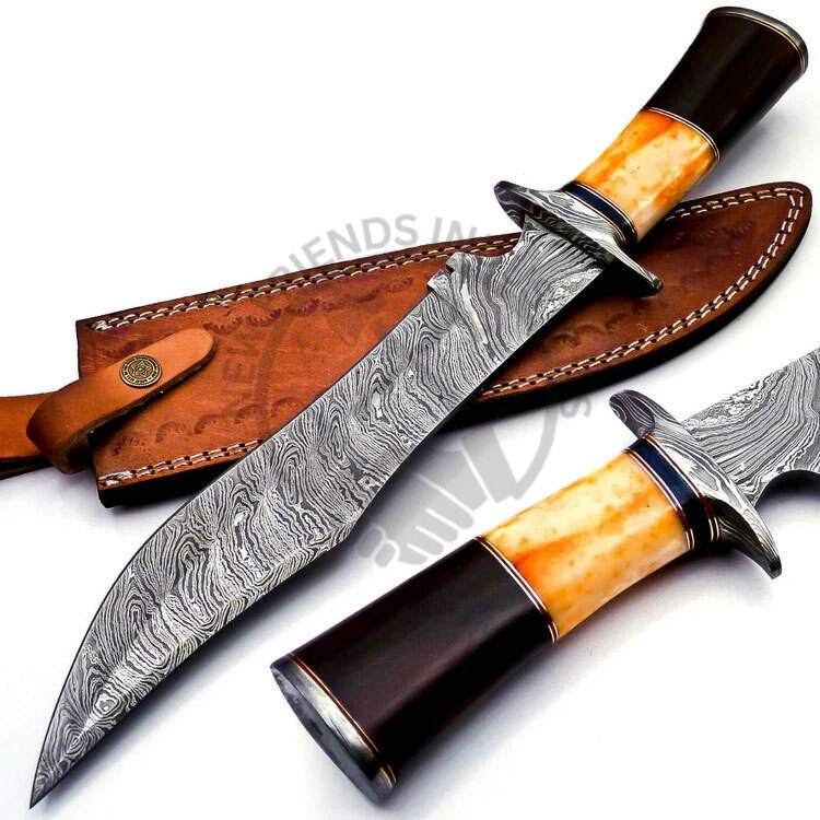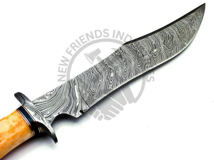 มีดโบวี่เหล็กดามัสกัสทำมือรุ่นใหม่ พร้อมด้ามจับทำจากกระดูกและเขาสัตว์ มีดใบตายสำหรับล่าสัตว์ ตั้งแคมป์ สะสม และเป็นของขวัญ