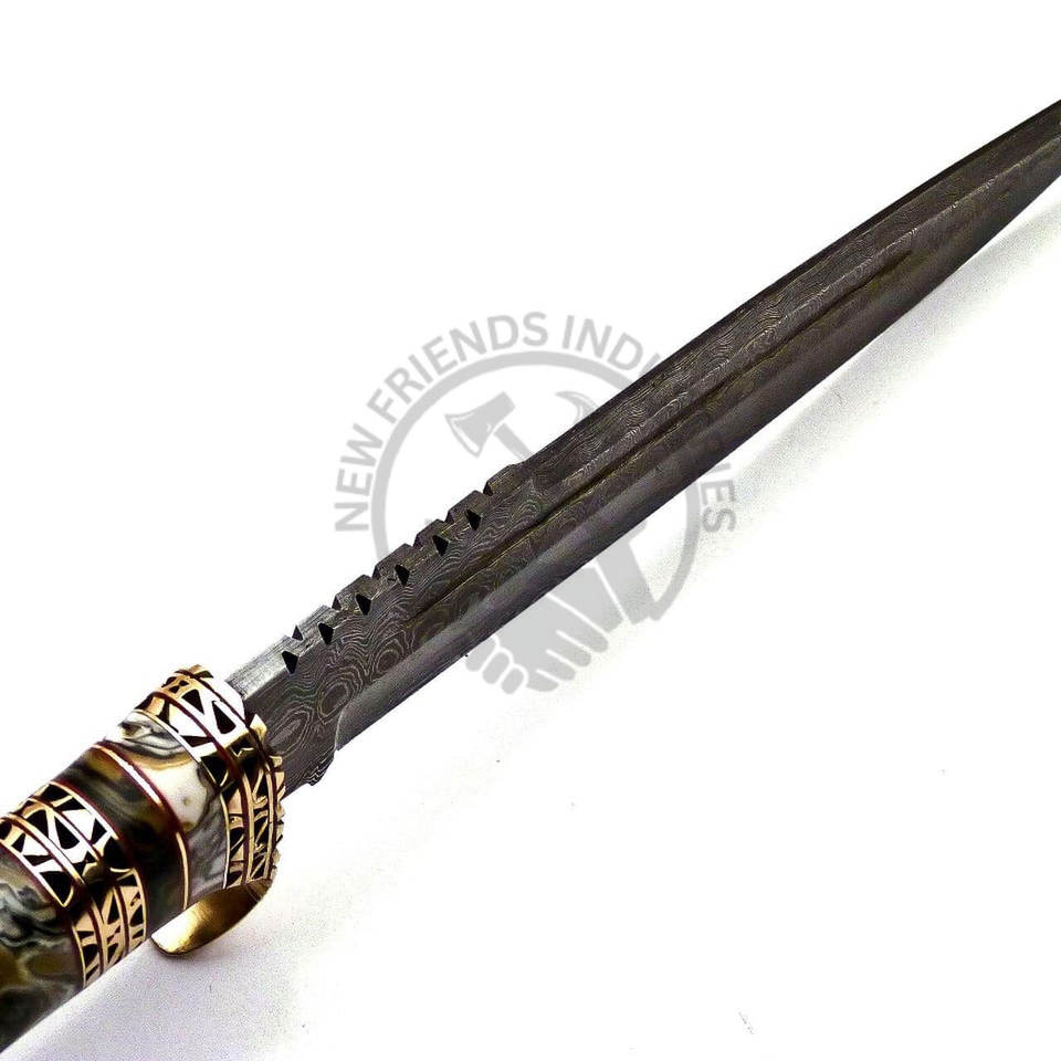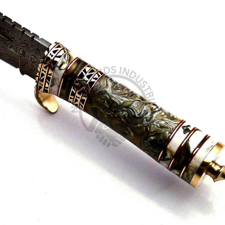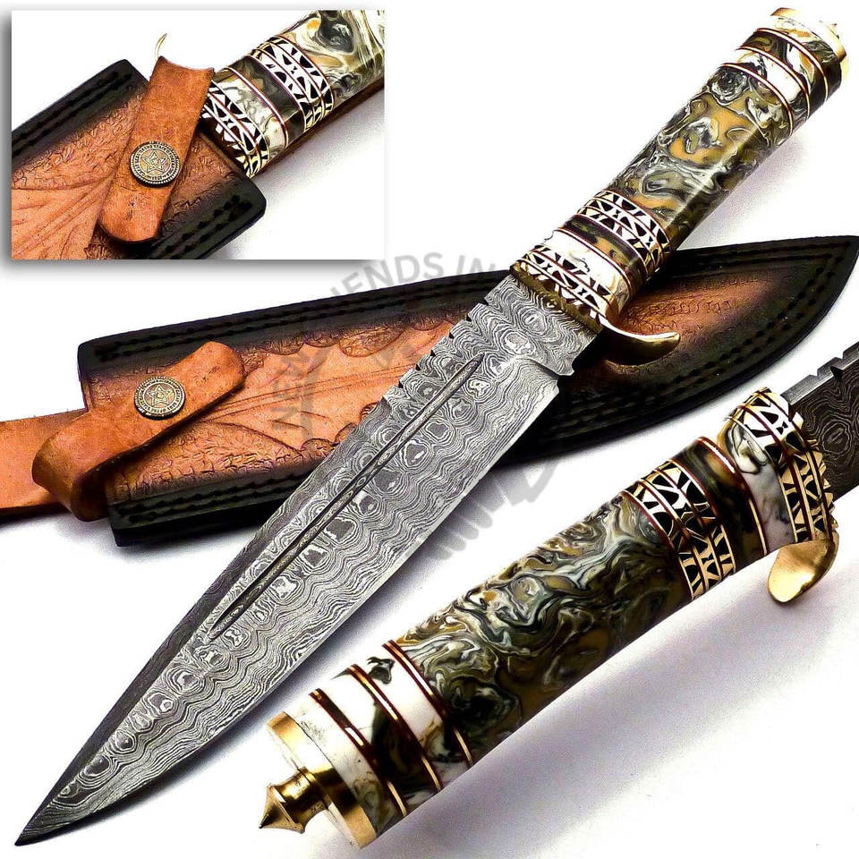 มีดล่าสัตว์เหล็กดามัสกัสทำมือรุ่นใหม่ พร้อมด้ามอะคริลิกทองเหลือง ใบมีดคมแบบตายตัว มีดโบวี่ มีดยุทธวิธี มีดเอาตัวรอด