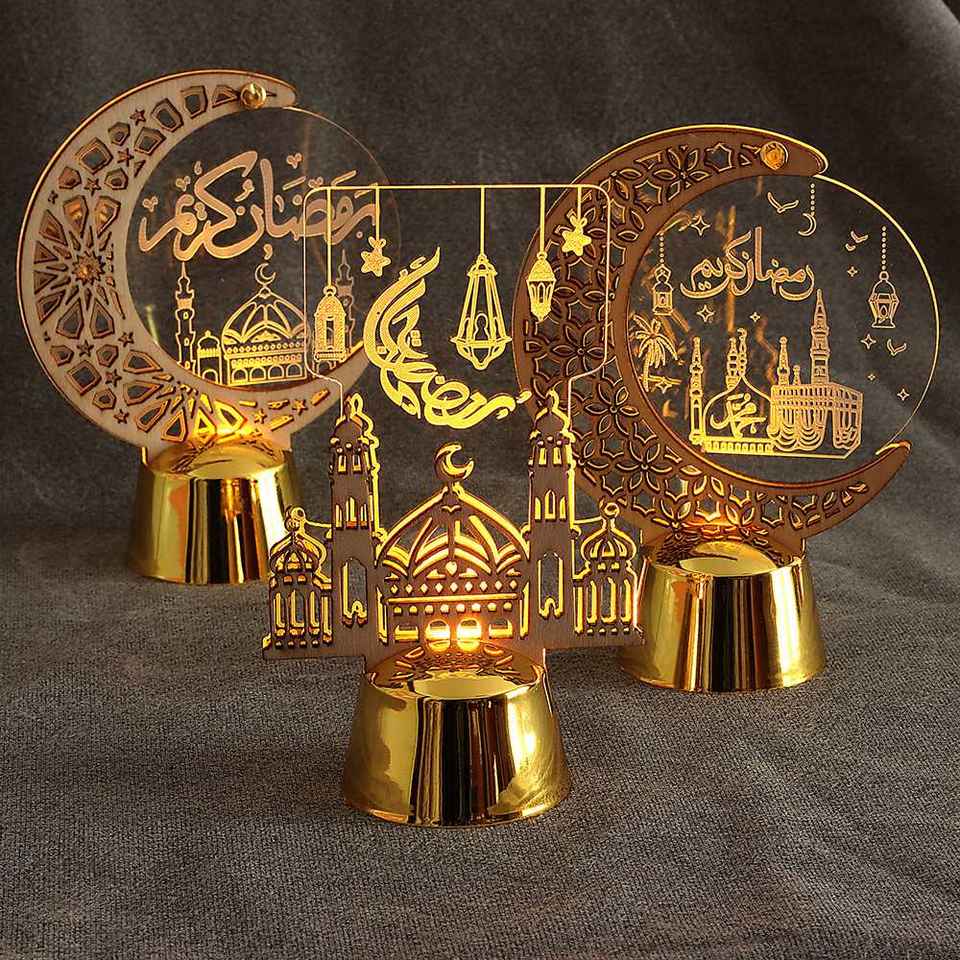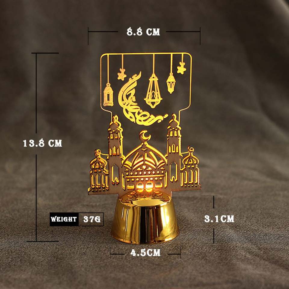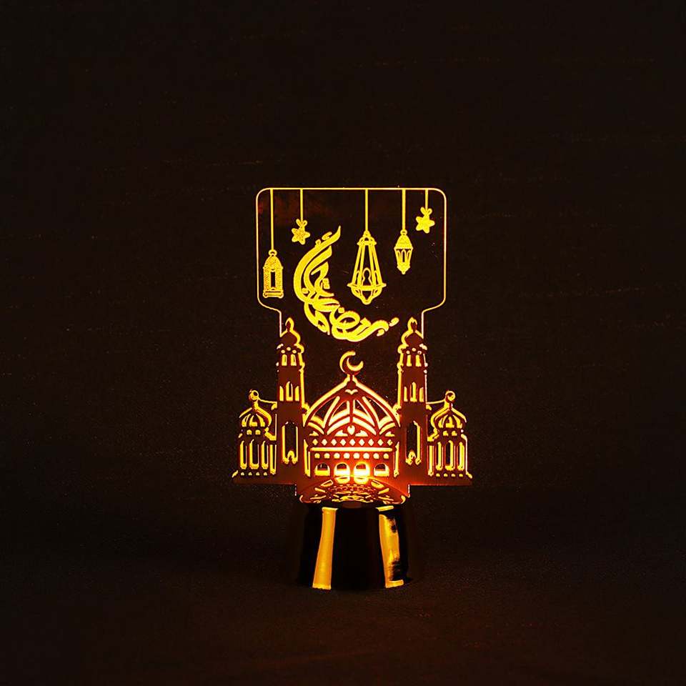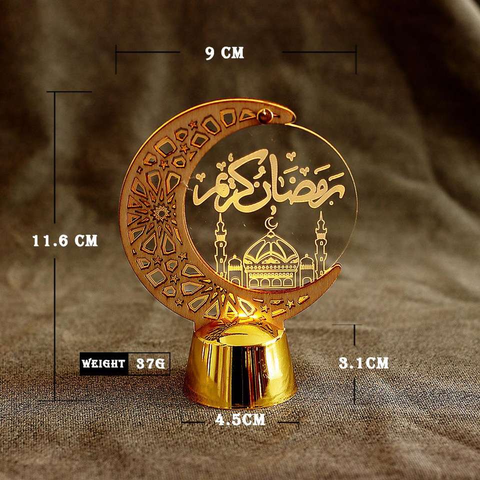 เทียนอีดมูบารัคแบบใหม่ ไฟ LED ประดับกลางคืน อีดอัลฟิตร พร้อมไฟ LED อะคริลิกเรืองแสง ไฟกลางคืนรูปพระจันทร์รอมฎอน ไฟ LED อะคริลิกตกแต่ง