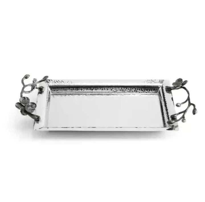 ถาดโลหะพร้อมที่จับสำหรับตกแต่งโต๊ะถาดเสิร์ฟของหวานสวยงามใหม่