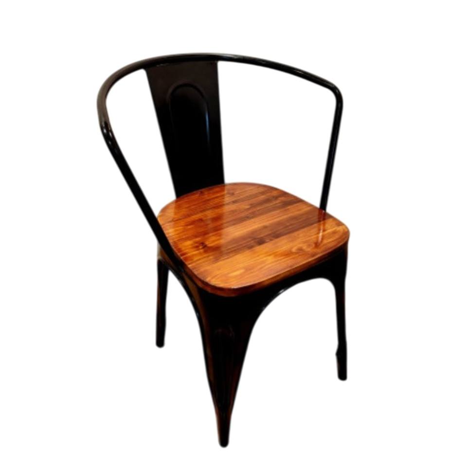 เก้าอี้โลหะสีดำพร้อมที่นั่งทำจากไม้ไม้สนเก้าอี้ตกแต่งระดับพรีเมียมสำหรับร้านกาแฟร้านอาหารและห้องรับประทานอาหาร