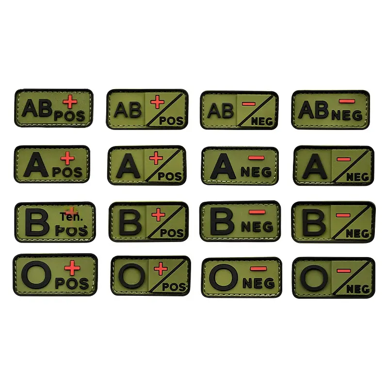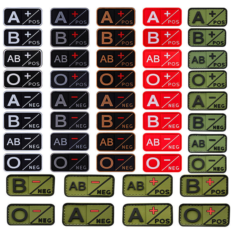 ป้ายติดแขนรูปสี่เหลี่ยมผืนผ้า PVC ปักลายใหม่ สำหรับติดกระเป๋าและหมวก แบบติดด้วยแถบตีนตุ๊กแก แสดงผลิตภัณฑ์ ประเภทเลือด A-, B-, AB-, O-