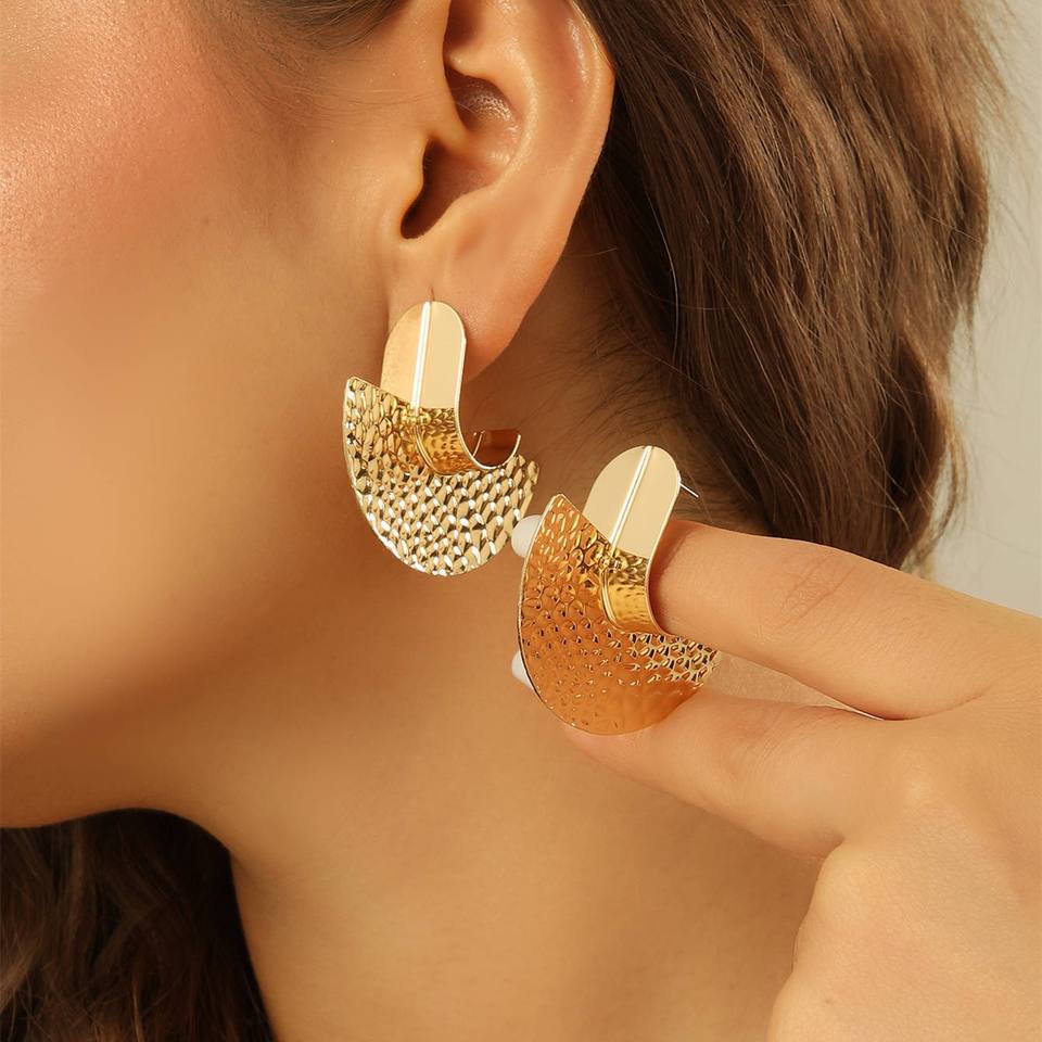 New European American Retro Gold Hammered Pattern Stud Earrings Niche Design High-end French Unisex Wholesale